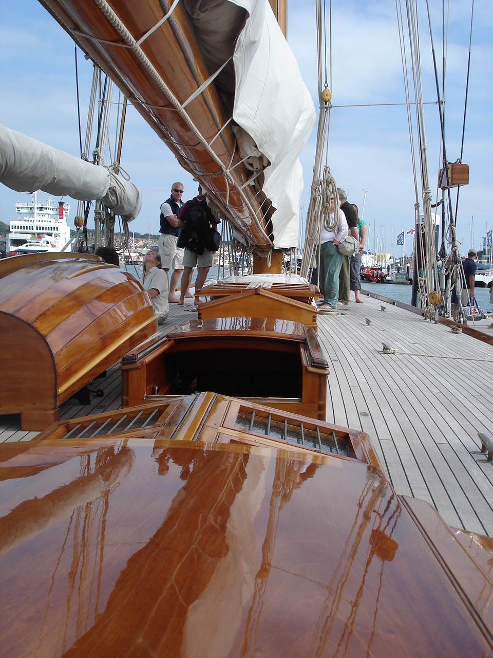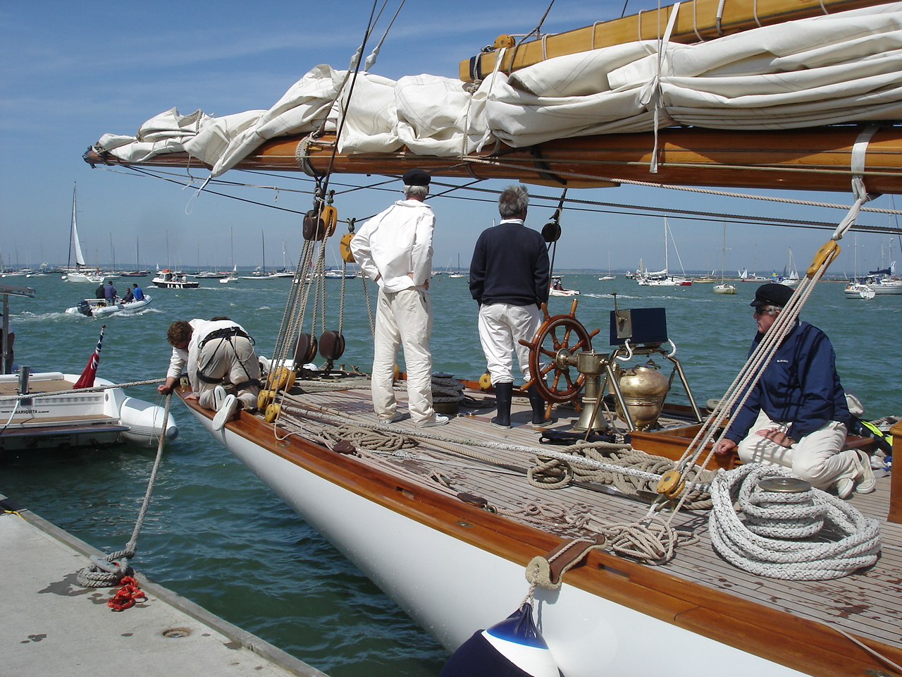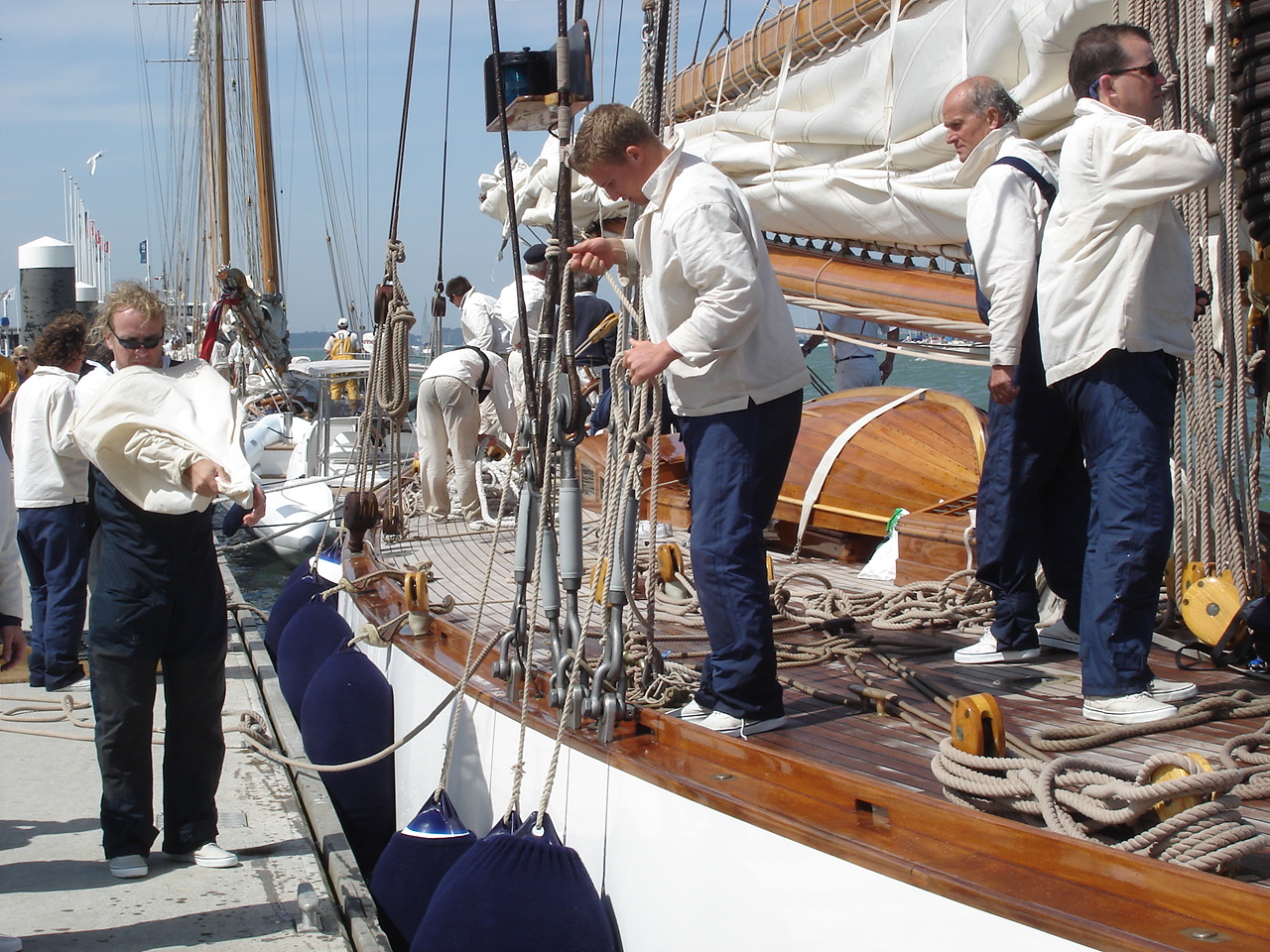 Back home the skipper of Mariquitta wonders where we are as his crew make sure she is ship-shape. |