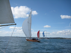 A run down to Bembridge Cardinal involved a tussle of our own as the big boats closed in the distance |