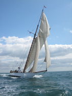 with tug o' war team on the windward rail as she hardens up and sheets in the hundreds of metres of main |